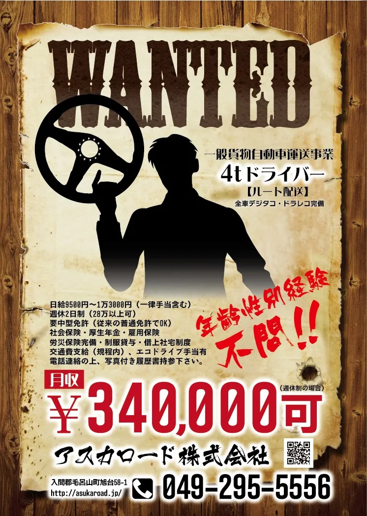 4tドライバー募集(ルート配送)